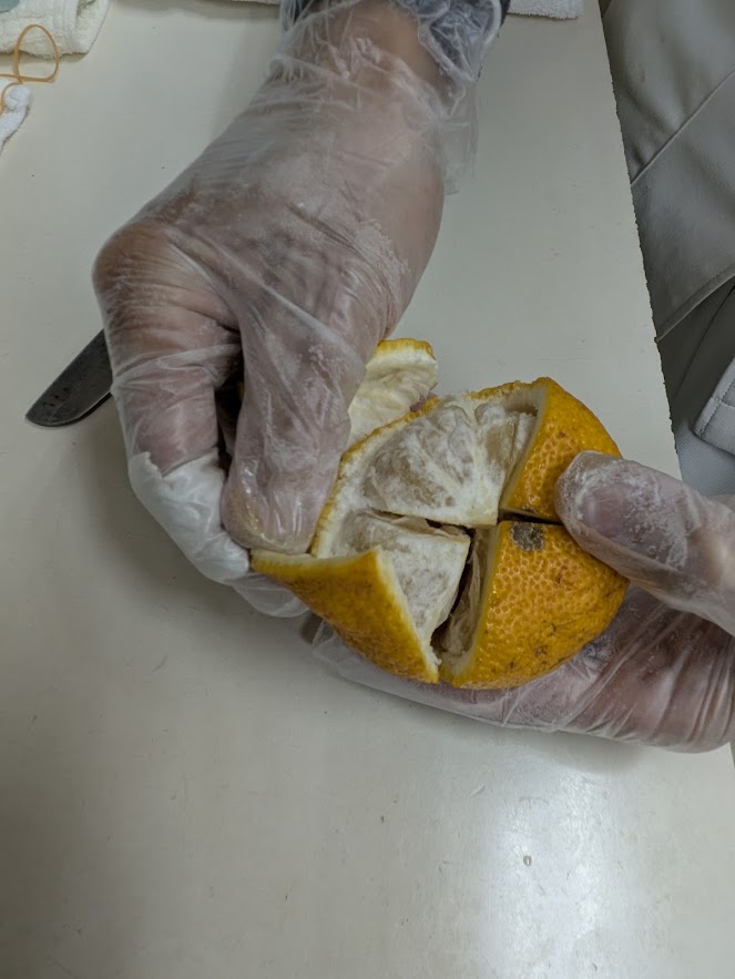 十字に切り皮をむきナイフで白い綿を削ぎましょう。なるべく白い綿がない方が苦味がないと言われています。